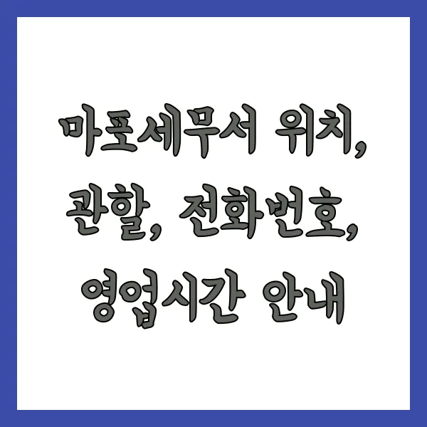 마포세무서는 서울특별시 마포구 지역의 세무 행정을 책임지는 중요한 기관입니다. 마포구 주민과 사업자라면 세금 관련 문의나 민원 처리를 위해 한 번쯤 방문해야 할 곳이지요. 이 글에서는 마포세무서의 위치, 관할 구역, 전화번호, 운영 시간 등 필요한 정보를 상세히 안내하여 여러분의 방문에 도움을 드리고자 합니다.